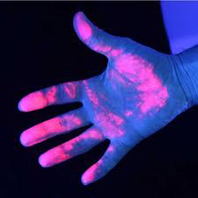 Feines Pulver das fein aufgetragen, unsichtbar auf die exponierten Gegenstände apliziert wird. Bei jedem Kontakt mit dem behandelten Gegenstand bleibt das Pulver unbemerkt an den Händen der betreffenden Person haften. Wird zur Identifikation oder der Spurensicherung mit UV-Strahlen sichtbar gemacht. (beste Ergebnisse in abgedunkelten Räumen).Da das Pulver vom "Täter" unbemerkt haften bleibt, wird dieser seine Hände nicht, oder Nur unzureichend waschen. Auch das tragen von Handschuhen bietet nur unzureichend Schutz, da das Pulver bei jeder Berührung unsichtbar verteilt und an anderen Körperstellen, z.B. Jackenärmeln, Hosentaschen etc. haften bleibt. Bleibt für mehrere Std. bis Tage feststellbar. Anwendungsmöglichkeiten: Türfallen, Computer . Keyboards, Kassen, Velos, Briefkasten, etc. Anwendung im Freien: Das Pulver mit Vaseline-Creme vermischen und hauchdünn aufgetragen ergibt eine Wetterfeste Markierung im Freien. Tausende von Möglichkeiten. Inhalt 2 OZ = 62 Gramm.