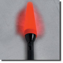 Roter Kunststoff Steckaufsatz für die D & C Cell Mag-Lites. Dienen zum Signalisieren des Verkehrs oder des Einparkens. Vorne offen, dadurch kann auch präzise geleuchtet werden.