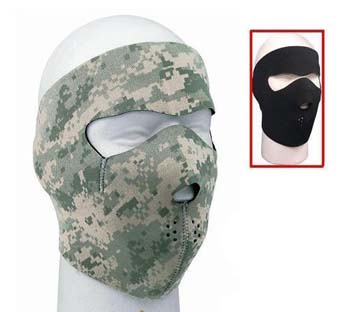 Neopren Gesichts - Schutz. Perfekter Schutz vor Nässe und Kälte. Zudem super Tarnung durch das Tarnmuster. Wendbar schwarz oder tarn. Passend für jede Kopfgrösse, befestigung mittels Klett- Verschluss.