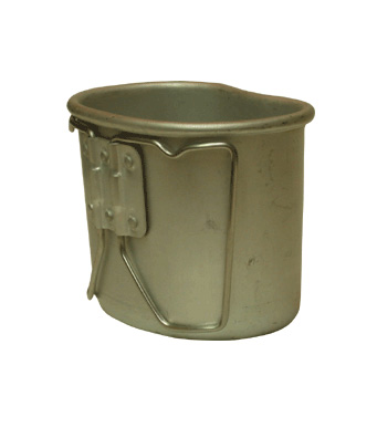Trinkbecher Chromstahl passt zusammen mit der Trinkflasche in den Feldflaschenbezug. Da der Becher aus Chromstahl besteht kann direckt auf den div. Kochern oder über dem offen Feuer gekocht werden. Versch. Modelle je nach Hersteller mit Klapp- oder Faltgriff. 304 Stainless Steel