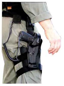Entreiss- oder Verlustsicherung speziell für Pistolen der Marken SIG und Glock. Starkes Spiralkabel mit Stahlseil-Kern. Klettschlaufe zur sicheren Befestigung am Gurt oder Koppel. Metallring und Karabiner speziell für die Griffstücke von SIG und Glock Pistolen.