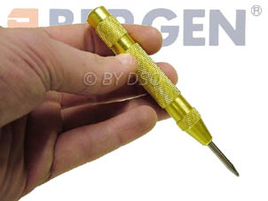 10 cm Langer rutschsicherer Messinggriff mit gehärtetem und gefedertem Stahlstift. Zum gafahlosen aufschlagen von Fenster- und Autoscheiben. Nur darauf drücken und TAG, die Scheibe springt.