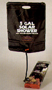 Campingdusche mit 20 Lt. Inhalt. Der Gummisack wird an der Sonner aufgeheitzt und bei gebrauch aufgehängt. An/Aus Ventil und verstellbare Brause.