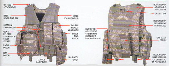 Die Art. 00738 Assault Vest Deluxe, Trinksystem compatibel, komplett ausgerüstet mit folgenden Molle Taschen: