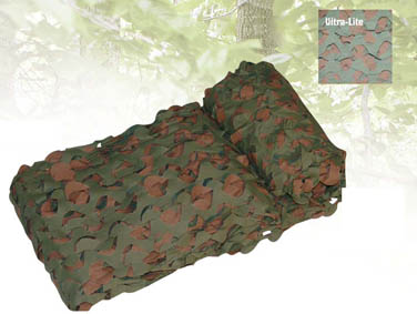 Kunststoff Tarnnetz. UV und Wetterfest durch vinyl beschichtetes Polyester auch Flammhemend. Sehr leicht und klein verstaubar gibt aber doch ein guter 3-D Sichtschutz. Wendbar 2-farbig, Braun / Oliv. Kann, mit zusätzlichem Material aus der Nähe und- oder mit Farbspray sehr schnell der Umgebung angepasst werden. Lieferbar in 2 Grössen: Gross: 1,45 x 4,20 Klein : 1,45 x 2,40