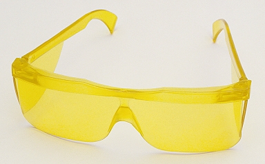 Gelbe Poly-Carbonat Brille zum schiessen im Schieskeller. Durch die helle Gelbtönung wird das Gesammtbild nicht abgedunkelt sondern die Farben verstärkt, was den Kontrast erhöht und nur die Blendung verhindert. Verschiedene Modelle im Geschäft.