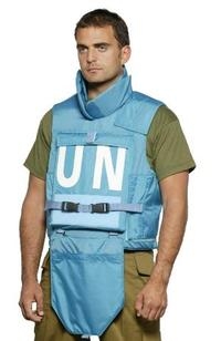 Schutzweste Intern Kl.I mit Keramikplatten auf Brust und Rücken Klasse IV. Hartkern .223 - 7,62 Tiefschutz kann vor die Brust hochgeklappt oder auch entfernt werden. Lieferbar mit Blauen und Schwarzen Nomex Bezügen. Blau z.B. für UN Einsatz.