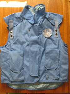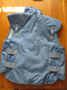 Splitterweste mit Kragen und aufgesetzten Taschen. Frontöffnung mit Reissverschluss und Klettabdeckung.