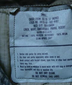 NSN No.: Parka 8415-01-102-6278 bis Futter 8415-01-102-4481 bis