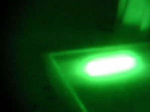 Das Licht ist nur mit einem IR- oder Restlichtverstärker zu sehen. Mit sogenannten Nachtsichtgeräten usw.
