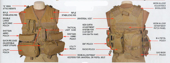 Art. 00738 Assault Vest Deluxe, Trinksystem compatibel, komplett ausgerüstet mit folgenden Molle Taschen: 2x 00367 Utility Molle Packtasche 1x 005271er Pistolen Mag. 1x 02880 Molle Radio Pouch 1x 02641 2er Pistolen Mag, 2x 03616 12er Schrotpatronen 1x 03581 Pistolen Holster, 1x 02360 Gasmaskentasche 1x 02880 Funkgerät Tasche