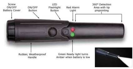 Robust, leicht, mit Gummi Handgriff und LED Lampe. Wasser- und Dampfdichtigkeit nach IEC 529 IP66 Standard Ideal für die Anwendung draussen und auf Patruille. Erkennt alle Metallteile inkl. Edelstahl-Legierungen usw. Ultra kurze Reaktionszeit und Vibrations- und Dioden Alarm Suchbereich 360 Grad 22 x 8cm 9 Volt Batterie für 70 Std. Laufzeit Temp. Bereich -35 - +70 Grad C.
