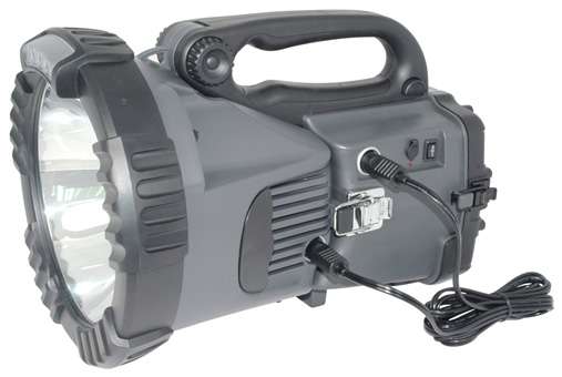 Provides up to 40 million candlepower 4 super bright LED assist lights Twin LED tube lamps Emergency color blinking light Emergency vehicle jump-starter 12V sealed lead acid battery Includes: 12V connector cord and AC/DC adaptor for battery charging Direct use 12V vehicle power through 12V connector cord Extra 12V power outlet Sturdy base and directional bearings Portable by built-in handle and nylon carrying case