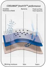 Das Material saugt den Schweiss nicht auf, sondern leitet diesen vom Körper weg in die zweite Bekleidungsschicht. - transportiert die Feuchtigkeit vom Körper weg - verhilft zu einem trockenen und angenehmen Körperklima - leicht, weich und atmungsaktiv - von Invista auf Performance getestet und zertifiziert
