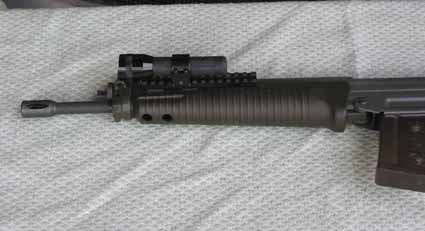 Stgw 90 und 90 PE oberer Handschutz mit Weaverschiene und Art. 00042 Streamlight Scorpion. Die Lampe ist mit 2 St. ZF Ringen fachgerecht montiert, so das diese parallel zur Laufachse lieget und eine schnelle Zielerfassung im Schein der Lampe ermöglicht wird. Die Montage der Ringe verfügt über besonders Grosse Schraubköpfe, welche ein entfernen der Lampe ohne Werkzeug ermöglichen. (Ringe bleiben an der Lampe.) Dieser Handschutz kann einfach und schnell gegen den Original gewechselt werden, somit ist an der Waffe keine Aenderung nötig. Montage kann wahlweise (links = Bedienung mit Daumen, oder rechts = Bedienung mit Zeigefinger) erfolgen. Ca. 65 Lumen Lichtkraft, inkl. Batterien. Fertig montiert.