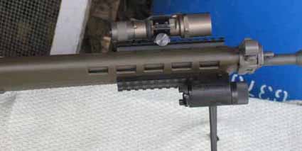 Stgw 90 und 90 PE oberer Handschutz mit Weaver/Picatinnyschiene und Art. 02729 Sure-Fire Centurion. Die Lampe ist mit 2 St. ZF Ringen fachgerecht montiert, so das diese parallel zur Laufachse lieget und eine schnelle Zielerfassung im Schein der Lampe ermöglicht wird. Die Montage der Ringe verfügt über besonders Grosse Schraubköpfe, welche ein entfernen der Lampe ohne Werkzeug ermöglichen. (Ringe bleiben an der Lampe.) Dieser Handschutz kann einfach und schnell gegen den Original gewechselt werden, somit ist an der Waffe keine Aenderung nötig. Montage kann wahlweise (links = Bedienung mit Daumen, oder rechts = Bedienung mit Zeigefinger) erfolgen. Die Lieferung der Sure-Fire C2 Centurion erfolgt schon mit dem starken P61 Brenner welcher 120 Lumen Lichtkraft bringt, inkl. Batterien. Fertig montiert.