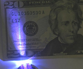 Beschreibung wie Art. 02706 aber mit ultraviolett Licht. Für schnelles u. sicheres Prüfen von Banknoten, Ausweisen, Pässen und anderen Dokumenten. Die im Papier befindlichen (Fädchen) lassen sich auch bei Tageslicht sofort erkennen. Bei der neuen I.D. der feine Strich auf der Rückseite, bei älteren und fremden Dokumenten ist sofort ersichtlich ob an Foto oder Stempel manipuliert wurde.