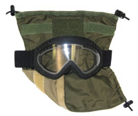 BlackHawk Tactical Goggle Cover wendbar zum Schutze der Schutzbrille, wenn diese am Helm getragen wird. Verhindert verschmutzung, beschädigung und reflektion. Mit Klettverschluss und Gummizügen 6 St. mit Stopper. Dadurch müssen bei Gebrauch nur die Stopper gelöst werden um das Cover über das Brillenband seitlich nach hinten zu schieben. Klettfläche an Front zum anbringen von I.D., Name, IR und Nat. Patch. Doppelte Cordura verarbeitung, wendbar Oliv und Schwarz.
