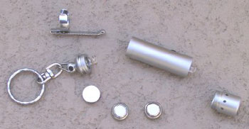 Die Stablampe für den Schlüsselbund. LED-Leuchtquelle weiss betrieben mit 3 St. Mini-Knopfzellen. Gesammtlänge nur 4.5 cm, Durchmesser: 10mm.Die LED-Diode ist durch den Lampenkopf aus Alu geschützt. Endkappe mit Gummidichtung und Schlüsselring. Mini-Mini-Mini Ding mit extremer Lichtleistung. Material: Flugzeug Alu aus dem vollen gedreht. Am Schlüsselbund oder am Reissverschluss der Jacke ist das Ding immer zur Hand. Leuchtweite 6-8 Meter