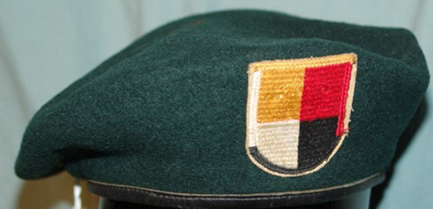 Barett der U.S. Special Forces Spezielles Oliv, Rifle Green 297, unverkennbare, grössere Tellerform für die Tragweise der Spezialisten.