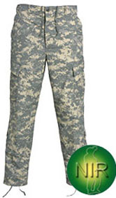 Gebrauchte Tarnhose der US Army. ACU = All Camo Utilities. Ny/Co NIR Tech Der Stoff ist zudem IR behandelt, so das er auch mit Nachtsichtgeräten nur schwierig erkennbar ist. This hat has the NIR IR Technology (Near Infrared Signature Management Technology) 50/50 Ny/Co = Nylon/Cotton