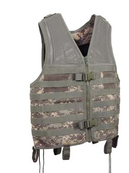 Molle Einsatzweste aus Cordura. Grössenverstellbar an Schultern mit grosser Klettfläche und beidseitig in der Hüfte mit4 Cordura Bändern und Fastex Schnallen. Breiter Rettungsgriff im Nacken. Rücken oben: Klettfläche für Patch und komplett 7 Molle Bänder. Schultern mit AntiSlip und 2 D-Ringen, mit Klettstreiffen gesichert. Frontreissverschluss und 2 Cordura-Bänder mit Steckschnallen. Beidseitig Klettfläche für Patch und 6 Molle Bänder. Am Saum Gurtschlaufen mit Klett und Druckknöpfen für gute Stabilität.