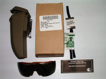 Die Sonnenbrille der US Army mit Splitter- und Laserschutz. BLPS = Ballistic Laser-Eye Protection System. Klass 2 Laser Protection Grüne Linse. Komplett mit Elastikband welches für einen zuverlässigen Sitz sorgt, Instruction Booklet und original Transporthülle. Bruchsichere Kunststoffbox welche mit den Alice Clips überall befestigt werden kann. NSN No.: 8465-01-417-4004