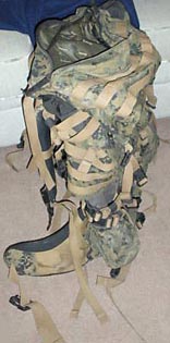 Dies ist Marpat. Das Etikett sagt alles. The idea of ILBE is to more easily configure the pack for the mission at hand and to maximize the mobility, survivability, and lethality of the Marine in combat environments. The feature mentioned above, is augmented with the ability to carry 120 pounds as required in intense assault operations. Yet the pack itself must not be bulky, no larger than 6000 cubic inches. This would include a 4500 cubic inch main rucksack. The ILBE is currently the most advanced military backpack in use by the U.S. Military today.