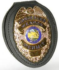 Badge Halter aus Top Leder. Massives Stahlclip zum festmachen an Jacke, Hemd, Hosenbund, Gürtel usw.