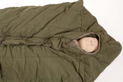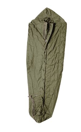 Schlafsack Oliv. Länge: 230 cm. Breite 78 cm. Aussenbezug: Nylon, Innenbezug: Baumwolle Füllmaterial: Du-Pont Polyfill für tiefe Temperaturen geeignet. Ist Teil der ECWCS Ausrüstung. Kapuze mit Kordelzug. ¾ Reissverschluss aus Edelstahl. Wird zum Transport in die Kapuze eingerollt. Für kalte Klimazonen geeignet.