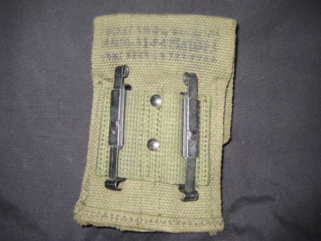 Doppelmagazintasche für .45 Colt oder andere einreihige Pistolenmagazine. Alte Fertigung aus Canvas Material und ALICE - Clips. Passend nur für 1911er Colt Govt.