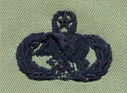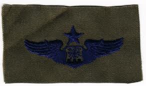 Verschiedene US Air-Force Badge zum aufnähen an Lager. Dunkel-Blaue Stickerei auf Oliv, wie auf Flight Suit oder Tarnjacke getragen.