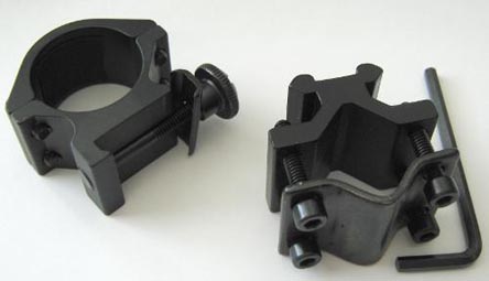 Weaver Schraubmontage für den Waffenlauf. Klemmschiene für den Lauf mit 4 Schrauben absolut fester Sitz. ZF Ring ebenfalls 4-fach verschraubt.