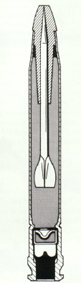 Gehärtete Stahlnadeln mit Heck Flügel welche für Stabilisation sorgen.
