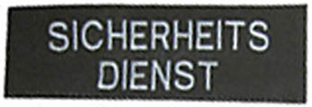 Schwarze Armbinde mit weisser Stickerei. SECURITY KONTROLLE SICHERHEITSDIENST