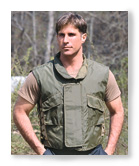 U.S. Army Splitterweste oliv mit Kragen. Frontreissverschluss und Ueberlapende Abdeckung. 2 Fronttaschen mit Klettverschluss. Seitl. Schnürbare Grössen-verstellung. Die Schutzwirkung wird mittels Ballistischem Nylon erreicht. Dies macht die Weste etwas dicker als mit Kevlar, dadurch ist sie aber beweglicher, geschmeidiger und angenehmer zu tragen. Lagerbestände dadurch sehr gutes Preis/Leisungs Verhältnis. NSN No.: 8470-00-823-7373 DSA100-68-C-2777 Rachman Co