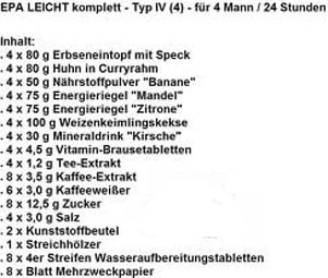 Original lose in Kisten für 4 Mann. Hier zu einem 24Std. Packet zusammengestellt und günstiger als im Einzelkauf. Wir verpacken diese einzeln, 4x 1Portion/24Std. Preis für 1x 1Mann/24Std.