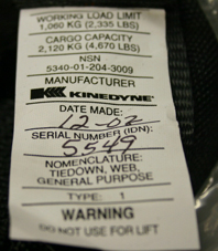 US Made by KINEDYNE for Army use MIL-PRF-71224-1 NSN No.: 3990-01-204-3009