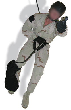Tactical Seilsack sFr. 640 Gr. Platz für 50 meter 11er Seil. Mittels zwei breiten Bändern mit Klettverschluss wird dieser am Bein festgemacht und mit einem weiteren an der Koppel oder dem Gstältli gesichert. Dieser Gurt befindet sich in einer Aussentasch mit Klettdeckel. Befestigung mit zwei Durchzugsschnallen aus Metall, die auch einem Sturz ins Seil standhalten. Diese sind wiederum mit Klett abgedeckt, was ein hängenbleiben verhindert und Metallgeräusche unterdrückt. Oben erfolgt der Verschluss mittels Schnürzug. Zweite Aussentasche 15 x 28 cm B x H für Klettermaterial etc. 150ft. = 50Meter