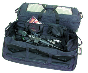 It contains 9 interior mesh pouches for gear storage, fully accessible hinge-type lid, hide-away carry handle, full wrap around carry handle, (2) end cap carry handles, (4) clear ID insert pockets, (2) on top, one at each end. Made with (2) layers of our NyTaneon 1000 denier nylon for superior use and abuse. Plus our Lifetime Guarantee! 12lbs. 4 oz.