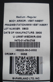 US Made by Point-Blank und Safariland NSN No.: 8470-01-487-0746