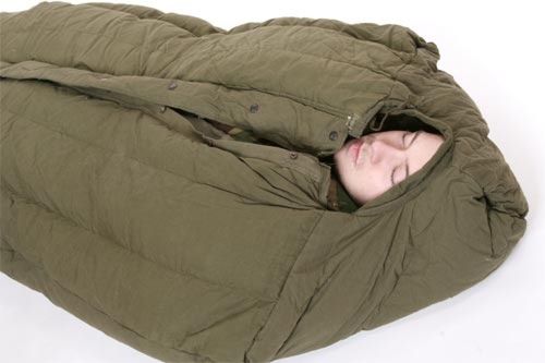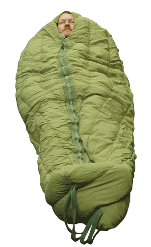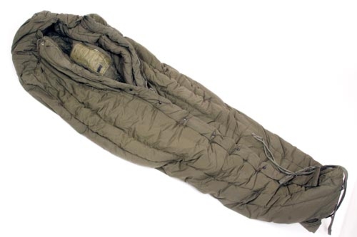 U.S. G.I. Schlafsack für extrem Kaltwetter. Gefüllt mit Daunen und Plyester. Wasserabweisende Poly/Co Hülle mit Reissverschluss und Druckknöpfen. Mumienform Gebraucht, aber Ausgesuchter, praktisch neuwertiger Zustand zum Bruchteil der Fertigungskosten. Has 6 lbs. of blended polyester fiber/down fill. Water-repellent poplin cotton lining 3" storm flap with snaps. Offset stitching seals the seams 64" long zippers Drawcord hood. Wide roll-up loops 84" overall, 30" wide at top and 14" at bottom Weighs 8 lbs.