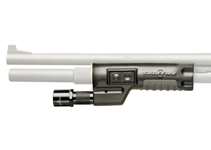 Sure-Fire Lichtsystem zur 870 Remington. SureFire 618 Der Vorderschaft aus Holz wird durch das Sure-Fire System mit Lampenaufnahme und Druckschalter ersetzt. Selbstmontage möglich, einfacher durch ein Fachmann. Lieferung mit Standartlampe 65 Lumen. Diese kann mit dem P61 Brenner auf fast doppelte Leistung gebracht werden. Art. No: 02710